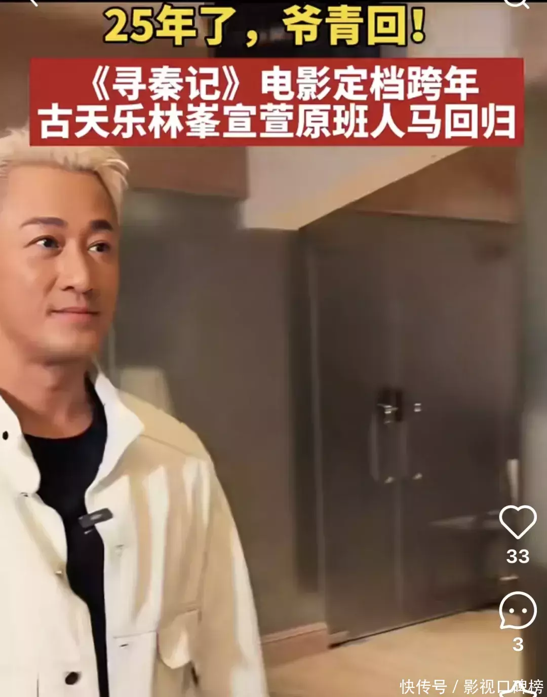 片方这次的宣传,目标倒是很清楚,重点全打在回忆杀上。他们甚至还紧跟潮流,用了一个挺时髦的办法,用AI技术把主演们现在的样子和二十四年前的剧照P在一起。古天乐白了头发,林峯褪了青涩,这种直观的对比冲击力很强,瞬间就能把人拉回过去。配合“爷青回”这种口号,说什么只要有这些人,就算是屎,也要高低进去尝尝咸淡。